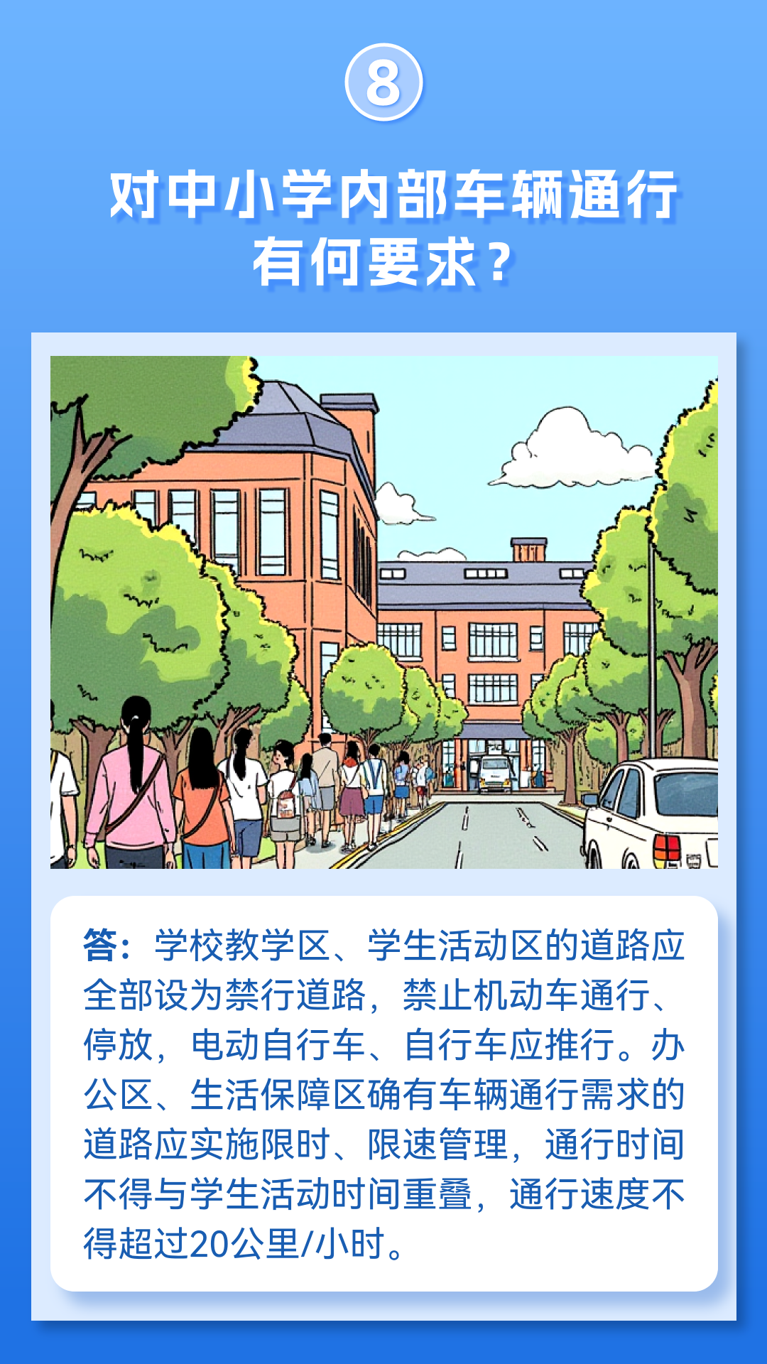 根据《道路交通安全法实施条例》《校车安全管理条例》《学生交通安全提升行动计划(2023-2026)》有关内容,教育部基础教育司、公安部交通管理局共同编写了“中小学交通安全十问”,供中小学校和学生学习参考,希望大家一起,携手共创文明交通环境。一起来看——