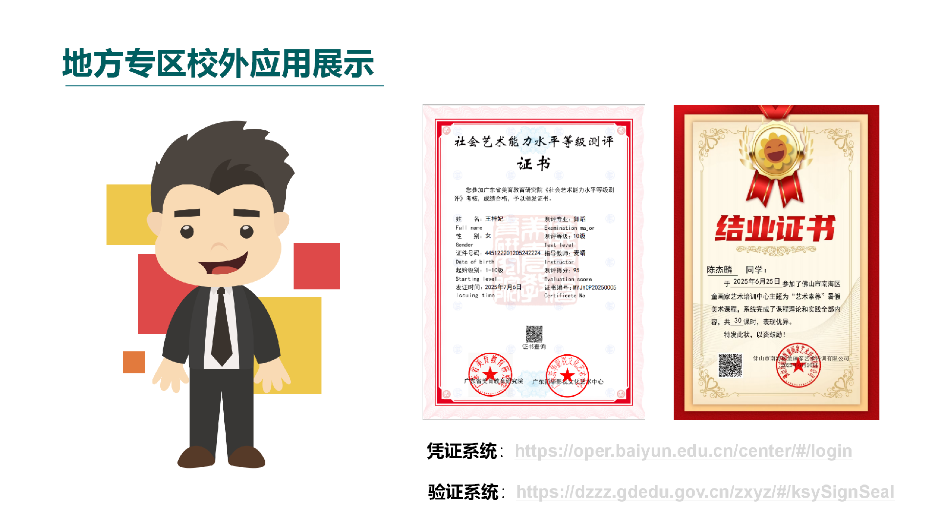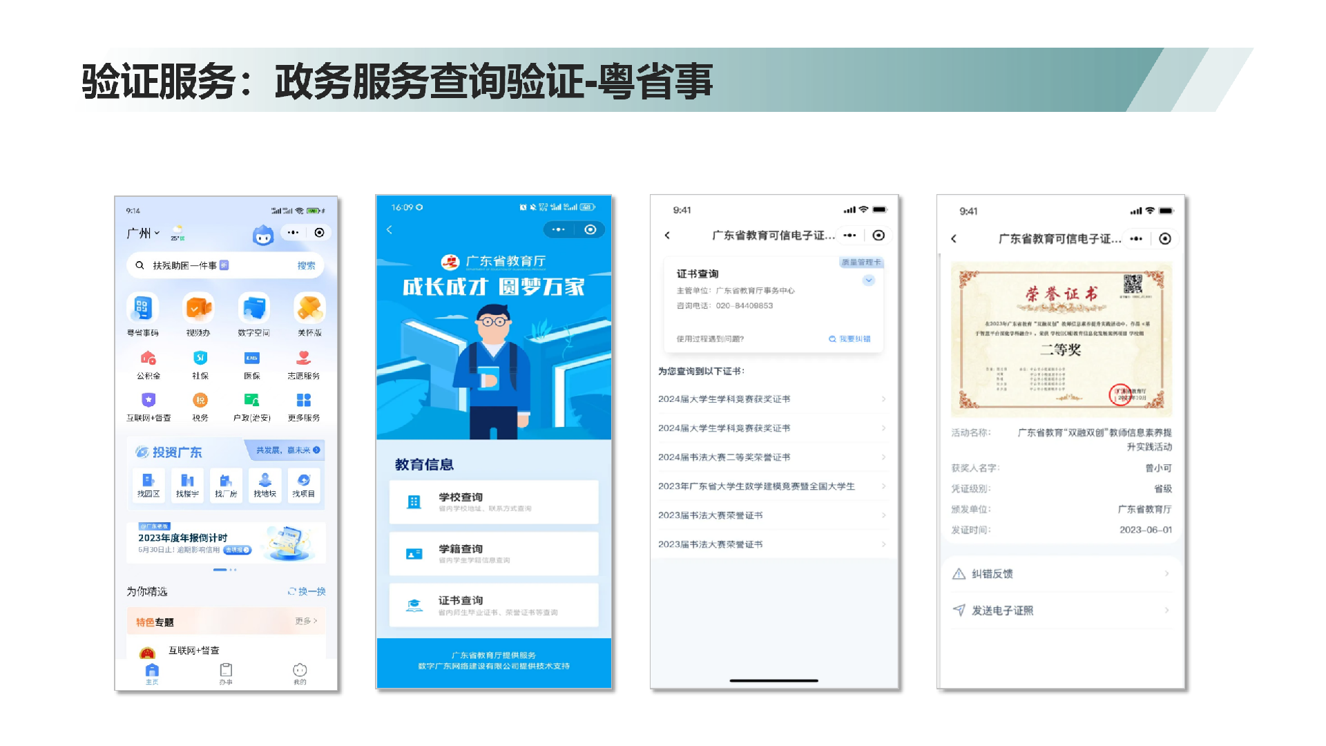 2、提升机构公信力:机构通过可信教育数字凭证服务系统发放的电子证书可以在教育部、广东省教育厅、粤省事等政府/政务平台查询和验证,增加机构证书的公信力,彰显机构专业性和规范性,提升机构在行业内的竞争力和声誉。